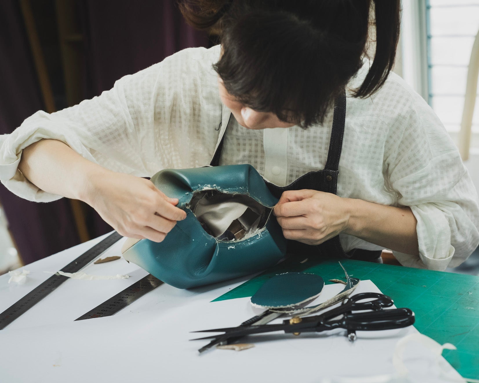 Every Motherhouse bag begins with carefully selected natural leather sourced mainly from Zebu cows in Bangladesh, known for their strong yet supple fibers. Unlike synthetic leather, our genuine leathers retain their natural character, grain and strength, and they continue to evolve beautifully over time.