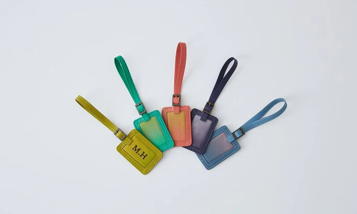 We offer original leather tags made from colorful gradation leather.You can personalize them with your favorite initials or letters — a simple way to make your bag truly yours.