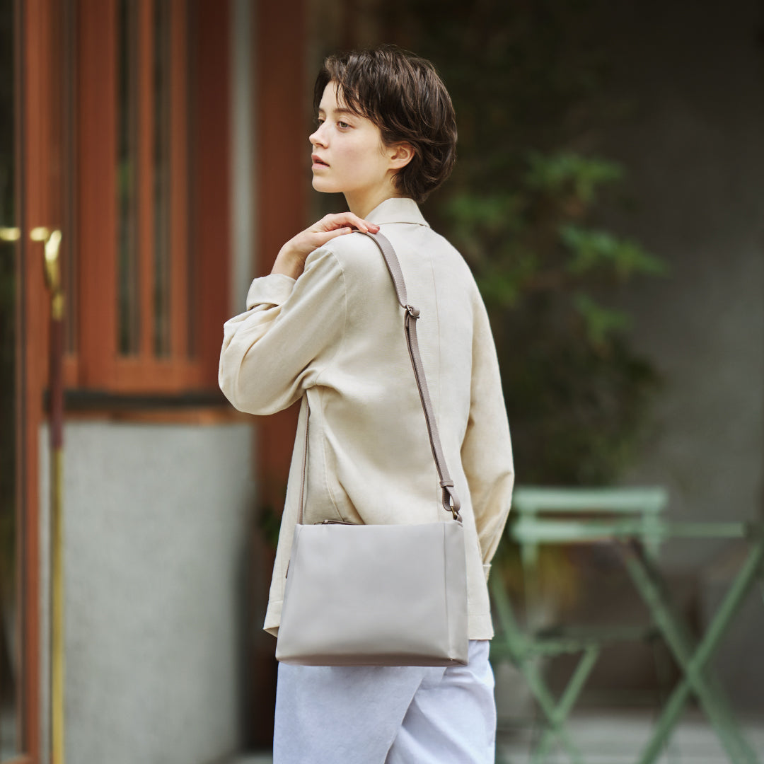 The slit pocket on the lower front of the bag can hold not only a white cane, but also a water bottle and a folding umbrella. It is designed to sink slightly under the weight of the contents, so the contents are less likely to fall out. We aimed to make this bag easy to use for anyone, regardless of whether they have a disability or not.