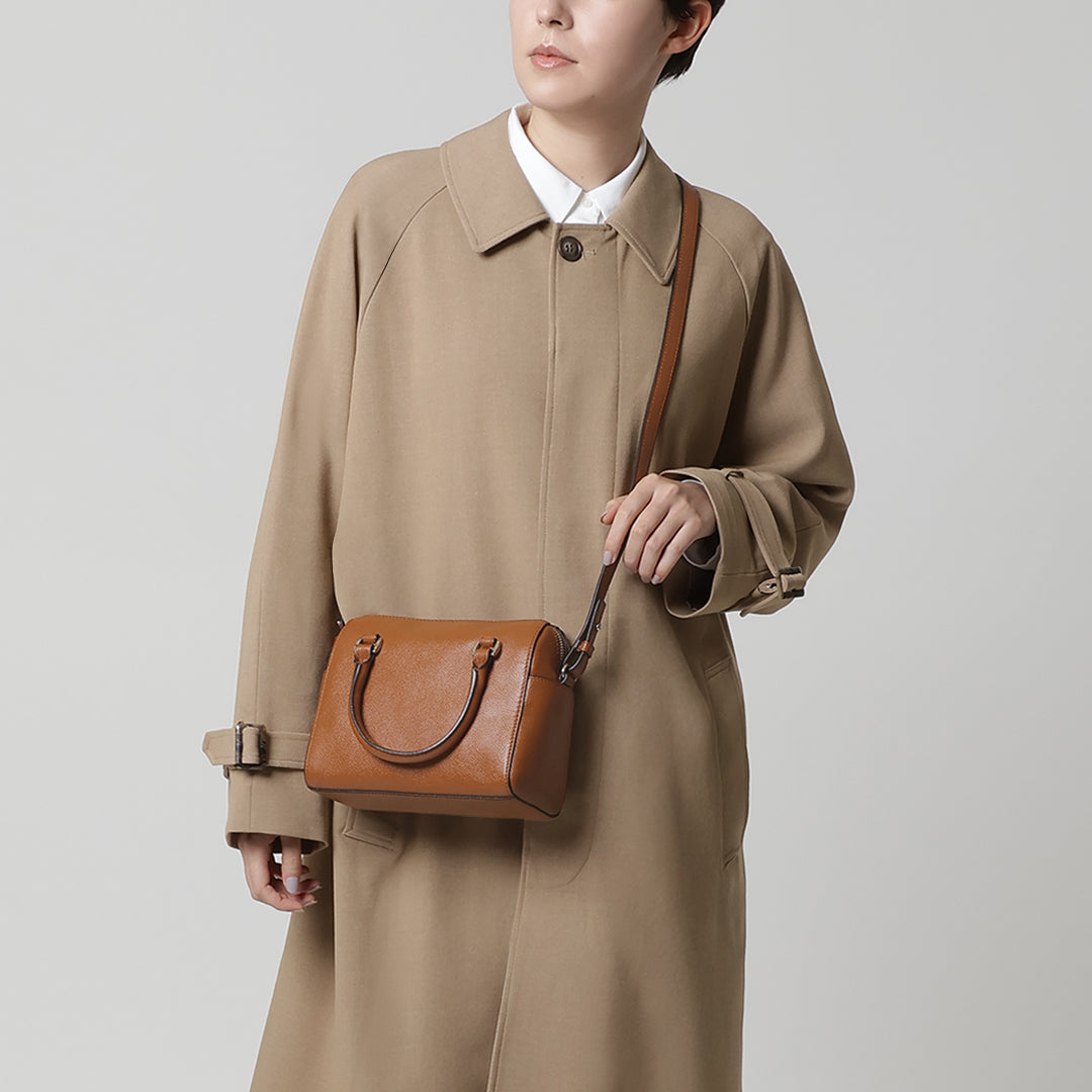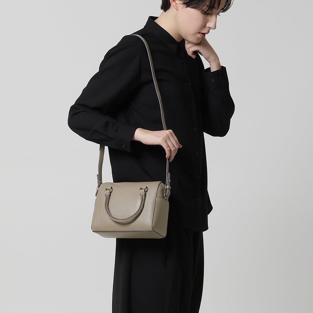 A 2-way mini Boston bag accented with edgy colors. The new model has been renewed to a smaller size while still having enough storage space to hold a long wallet or a drink bottle. The plump form and basic colors can be enjoyed with a wide range of styles, from elegant to casual.