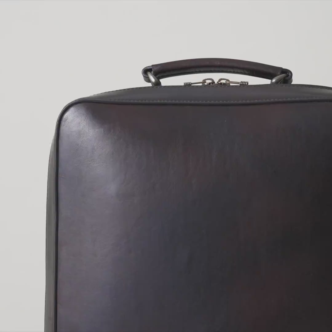 To make the most of the leather's individuality, this square-shaped backpack is made of natural cowhide leather, slowly oil-impregnated with antique leather. The design is minimalist, with no waste, so that you can fully enjoy the character of the antique leather with its rich shades of color.