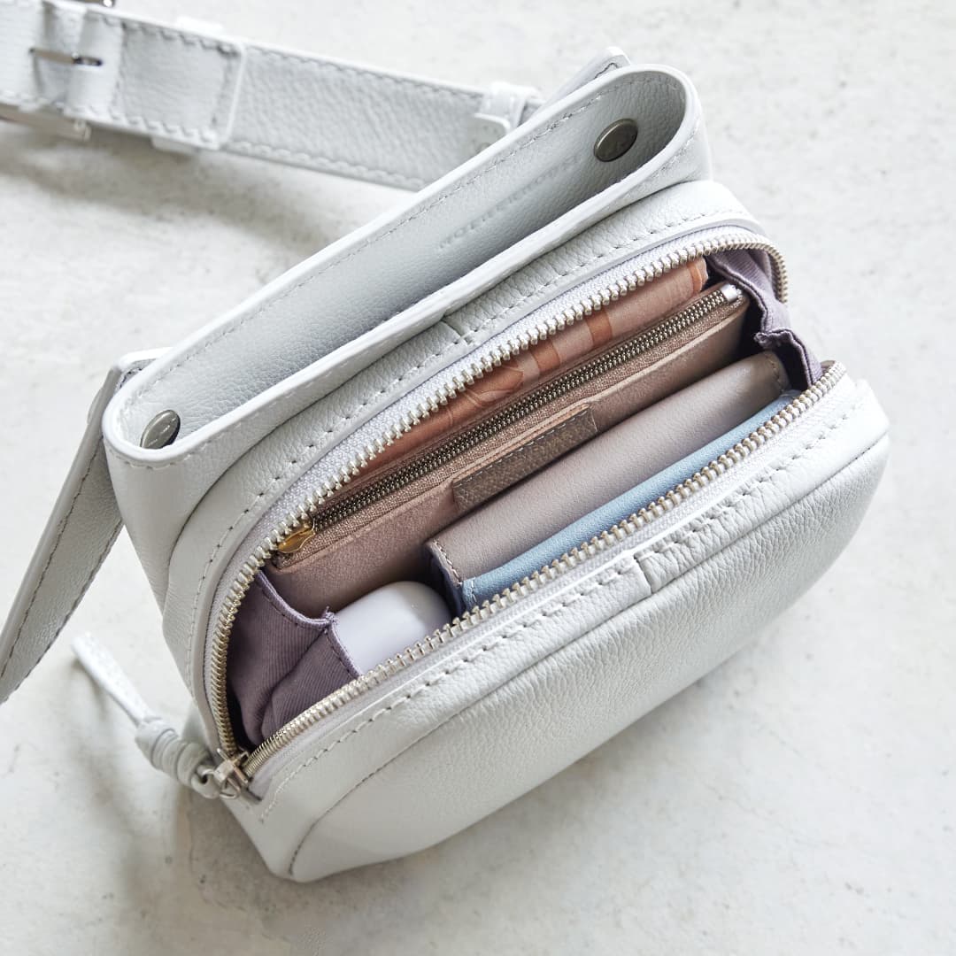 The shoulder strap can rotate 360 degrees, allowing you to use the Sora in many ways. This strap structure allows you to use it as a shoulder bag and a waist pouch. The soft leather and thick strap fit your body nicely, making it comfortable to use and light-hearted, adding color to your outings.