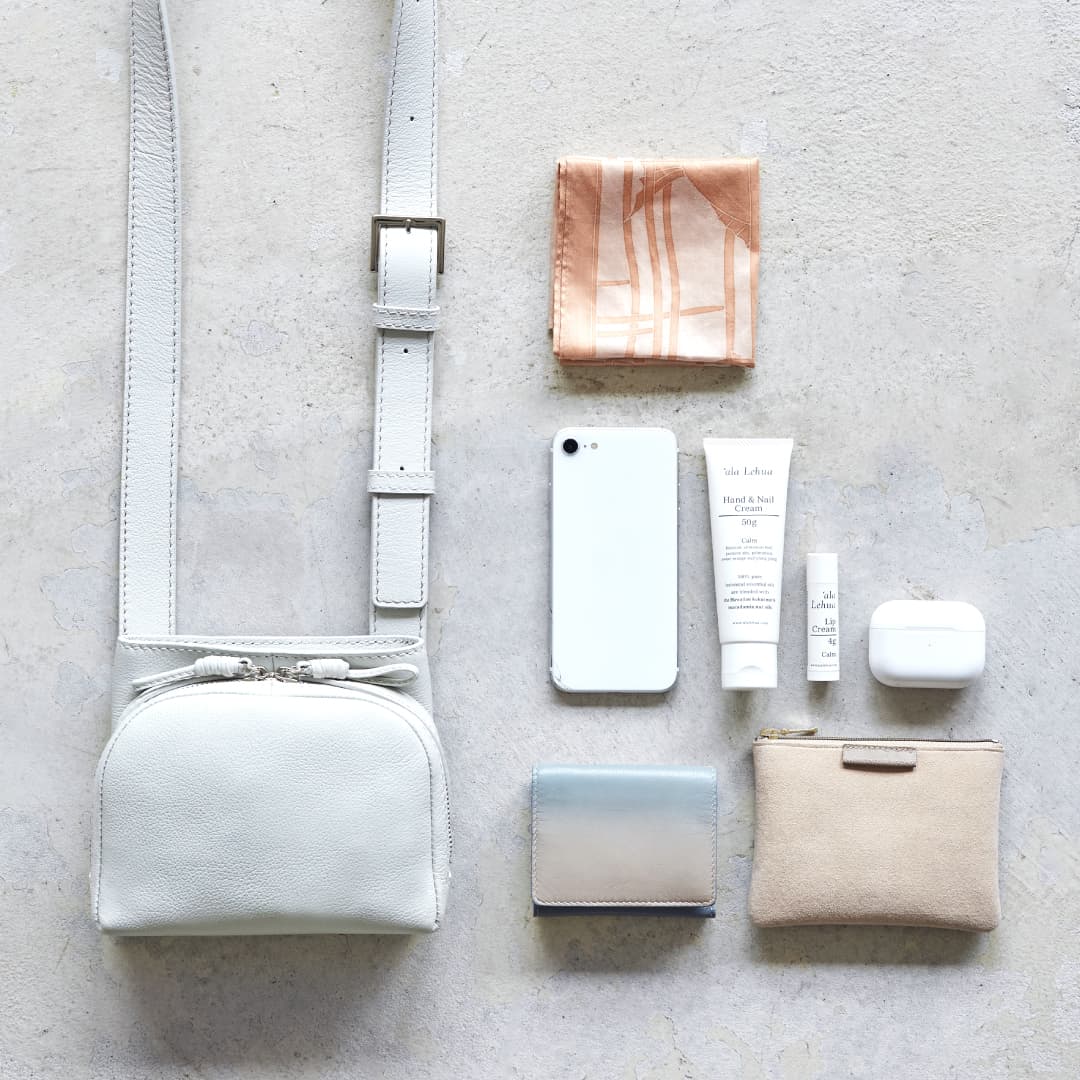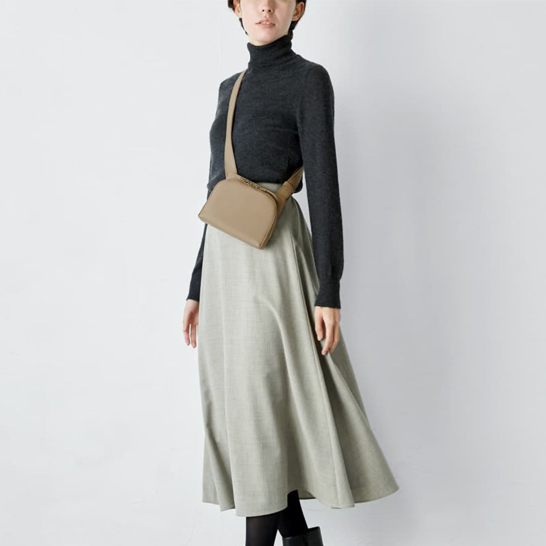 “Sora” features a two-layer structure with a slit pocket that can be used like a clothing pocket. Its 360° rotating shoulder belt allows you to wear it two ways—as a shoulder bag or a waist pouch. The belt leather has been slimmed down for a more flexible, body-hugging fit. The compact S size is perfect for days when you want to go out light.