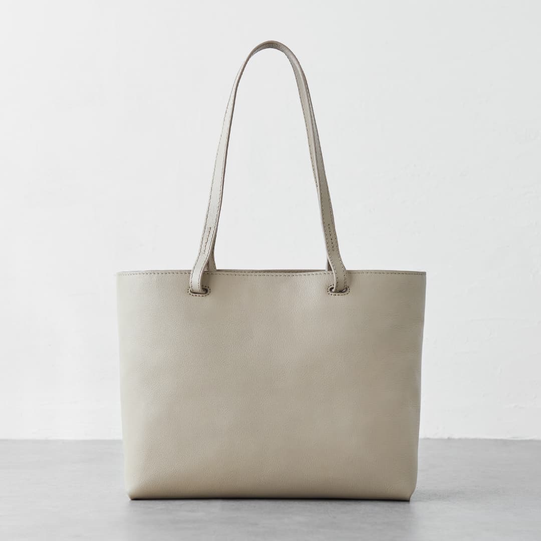 With minimal parts and hardware, it has a simple appearance with no boundaries. The finely grained and softly textured leather gently wraps the entire bag.