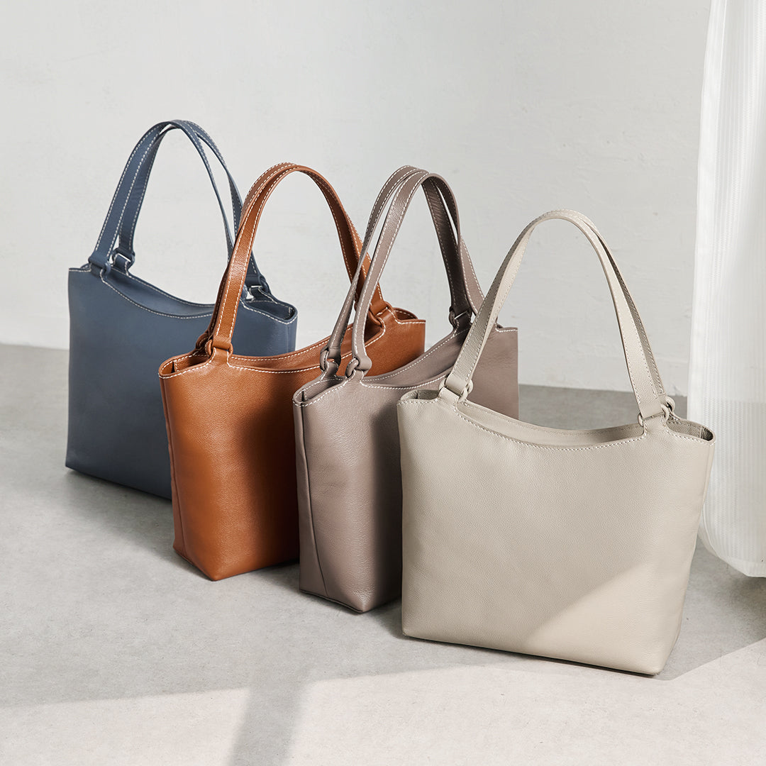 The Yui Tote combines a classic design with subtle touches of artisan craftsmanship. Its carefully tailored, gently rounded silhouette reflects thoughtful stitching and attention to detail. We hope the warmth of skilled handwork accompanies your daily life, bringing a sense of calm and comfort.