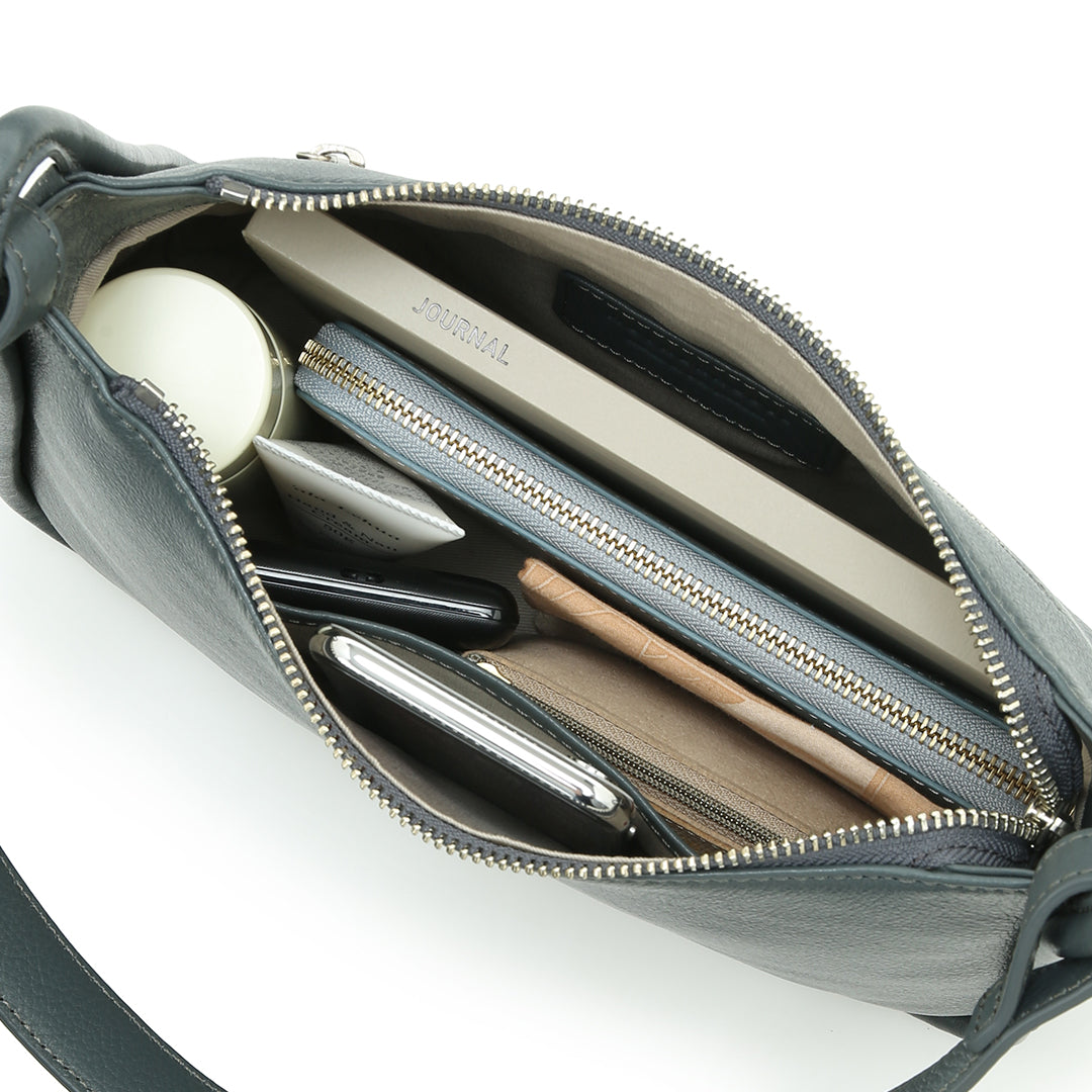 This sophisticated square-shaped handbag is crafted from supple grained leather. Its plump texture gently conforms to your body, and the rope gusset adds a touch of design. Its size is perfect for outings, as it can fit a long wallet, pouch, and even a 500ml PET bottle. Its two-way design allows it to be used as a shoulder bag, allowing for versatile styling.