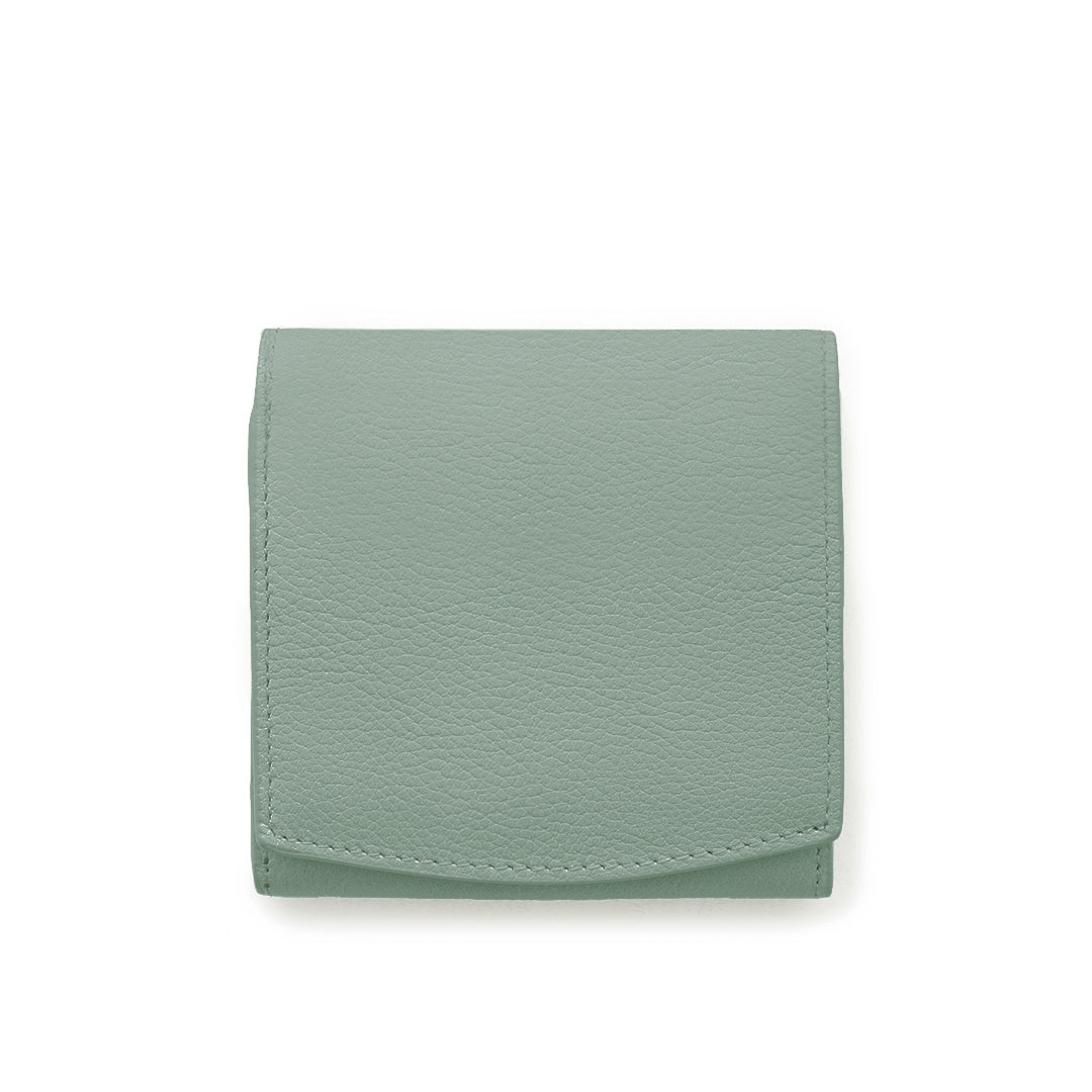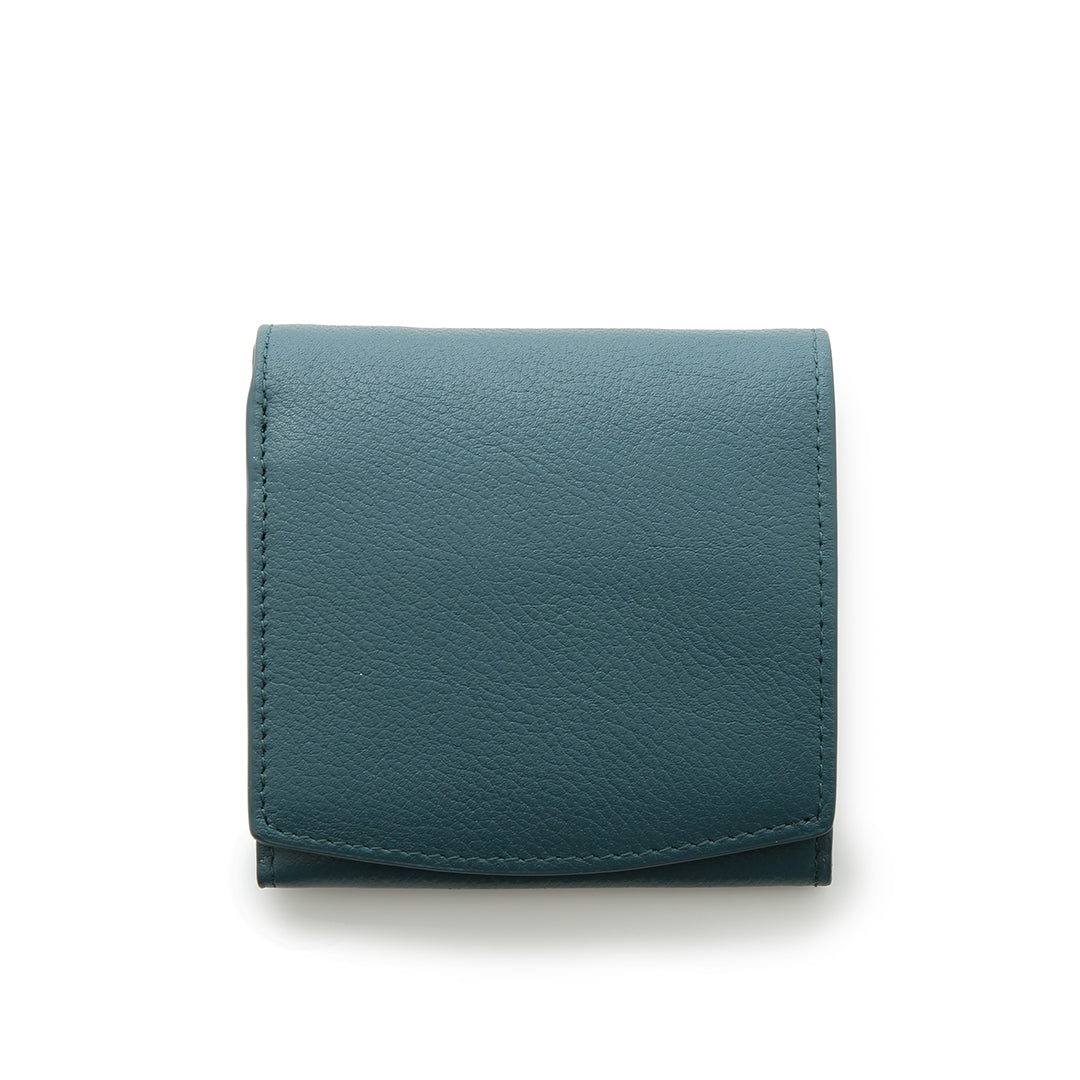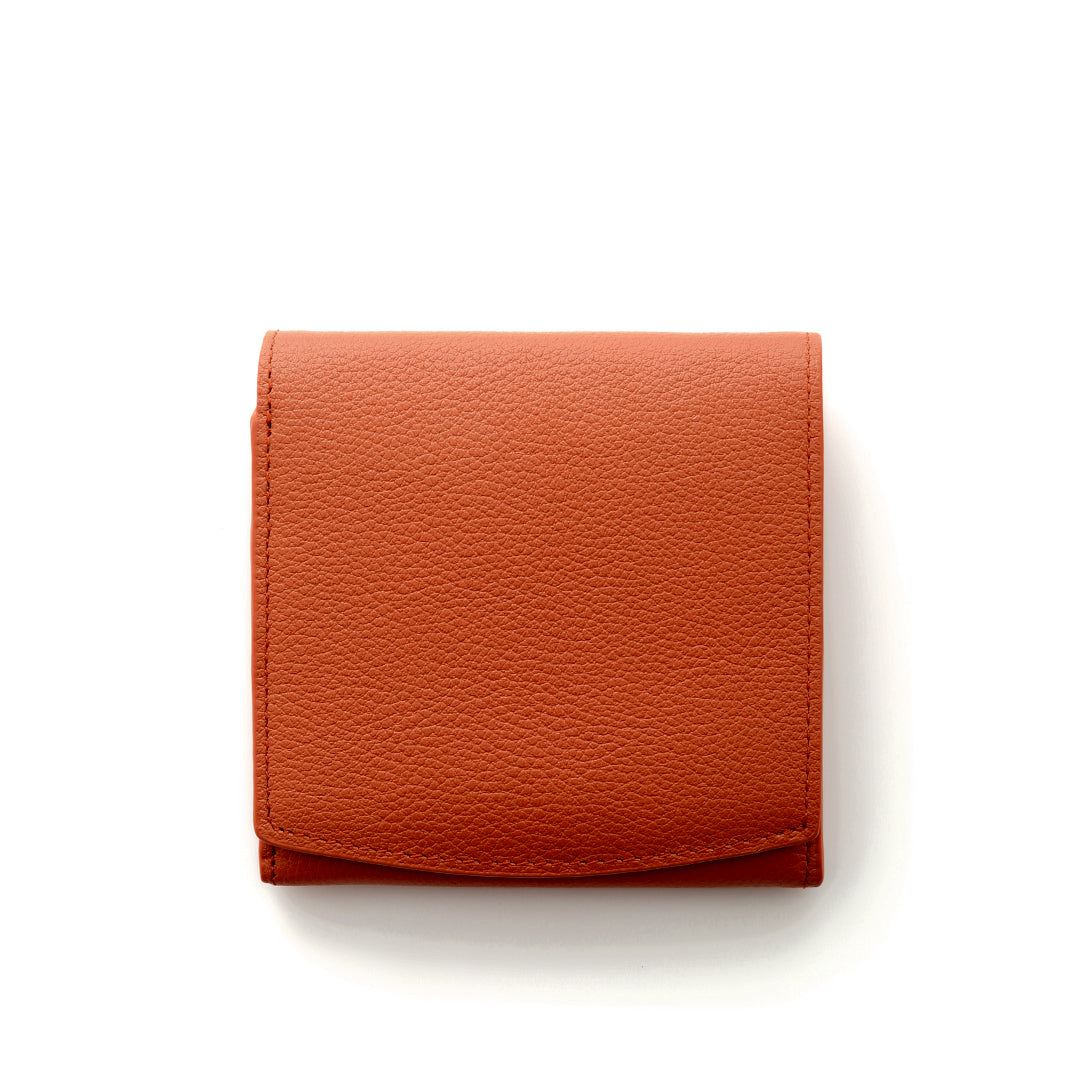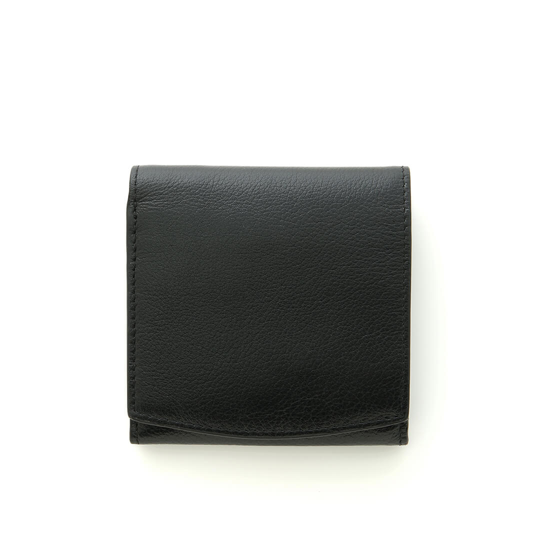 This wallet is made of refined milling leather with a beautiful, delicate grain expression, and has a soft, fluffy feel. The flap portion is tailored with a smiling arch. This compact wallet with its simple design is recommended as a daily companion.